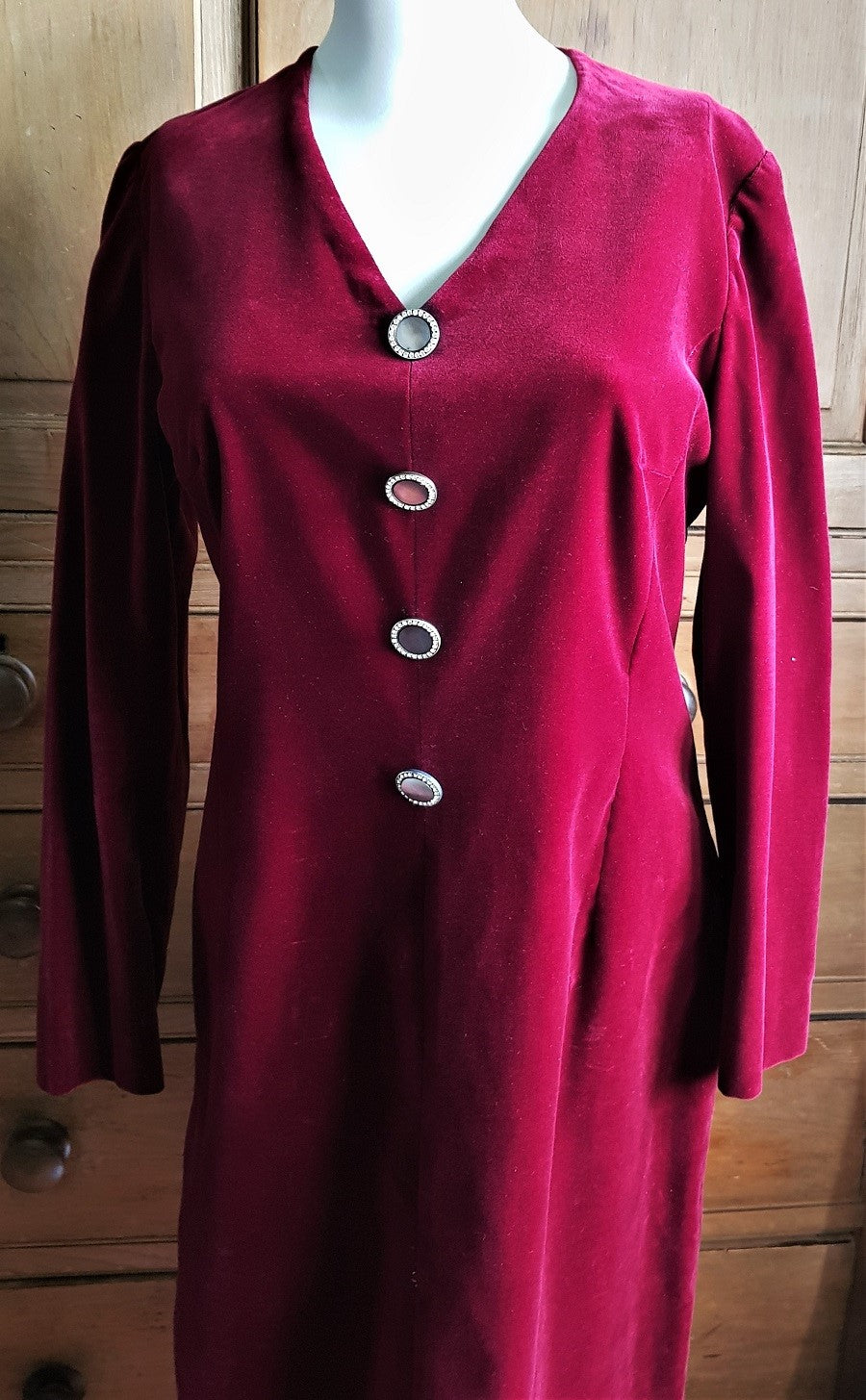 Customers are asked to bear in mind that vintage garment sizes bear little or no resemblance to contemporary sizes. Furthermore, current high street size labels are inconsistent, with M&S and Wallis being noted for their generous proportions while others come up on the small side.