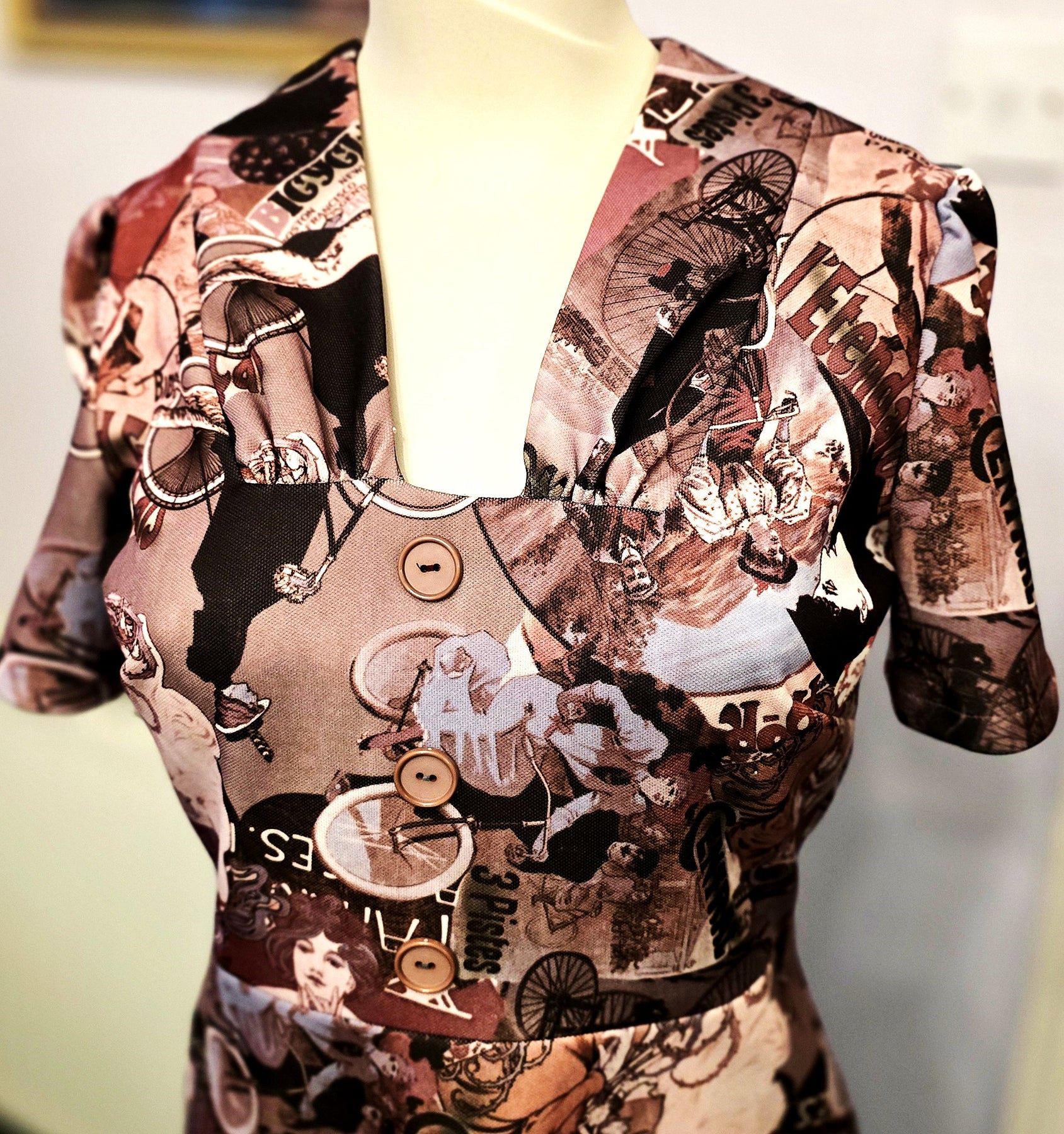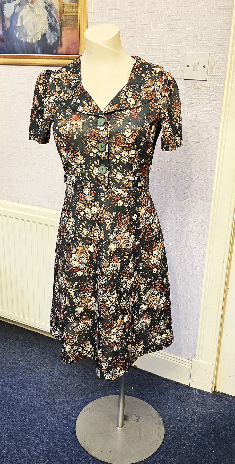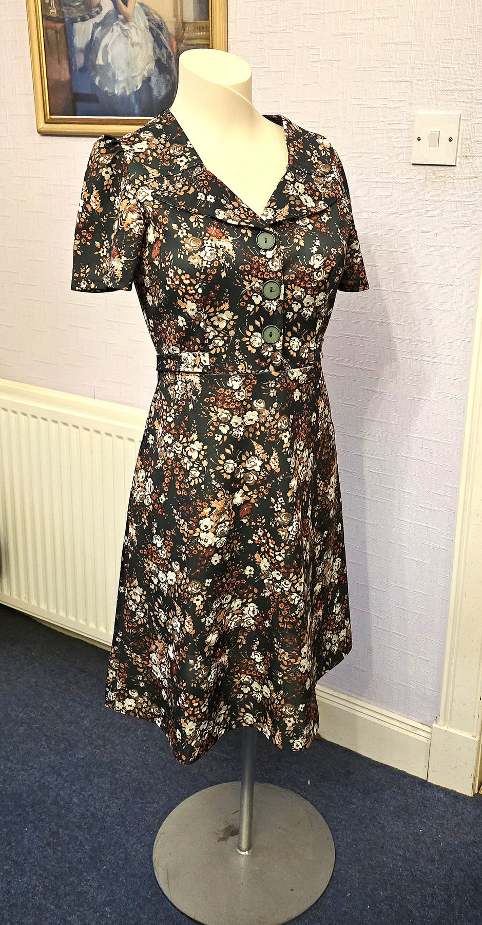 Customers are asked to bear in mind that vintage garment sizes bear little or no resemblance to contemporary sizes. Furthermore, current high street size labels are inconsistent, with M&S and Wallis being noted for their generous proportions while others come up on the small side.